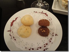 Since we were early, the server kindly brought us some snacks. Since they had meat, they brought me a few cookies. I am thinking this was wise on their part since I hadn’t eaten in a while and it was time for wine.